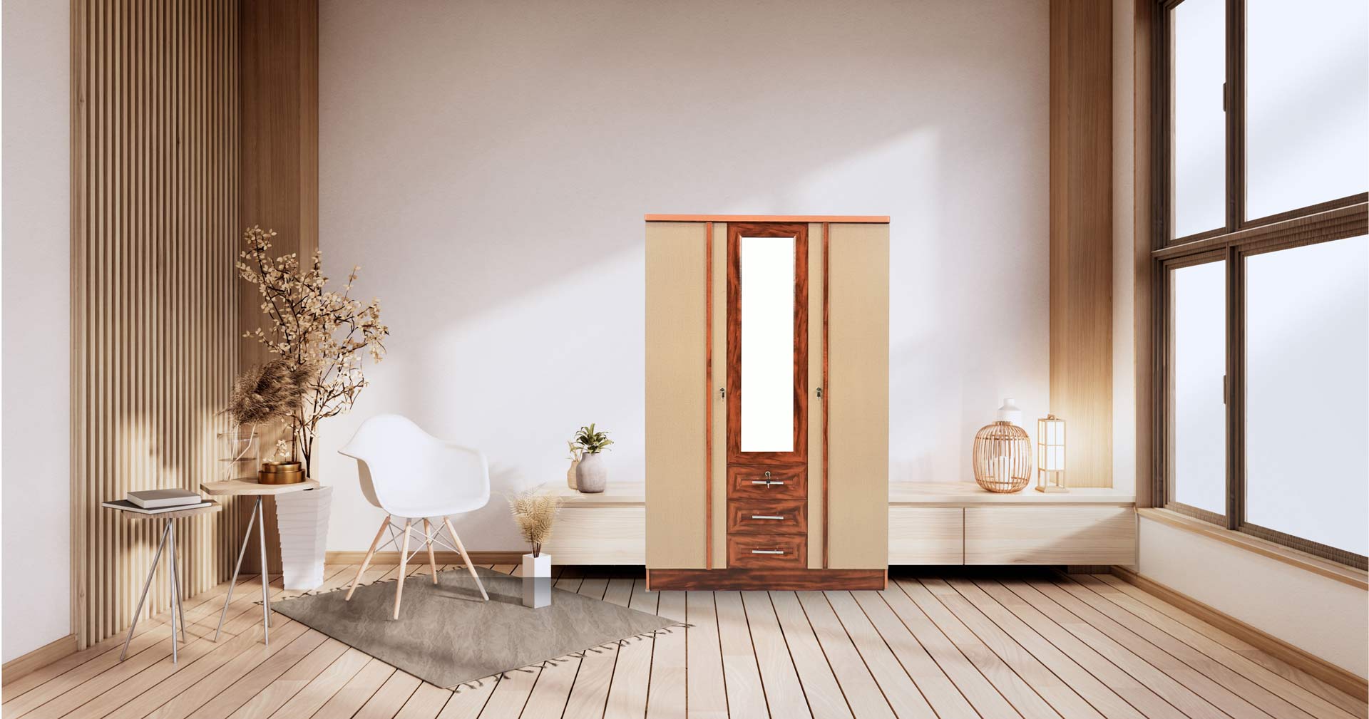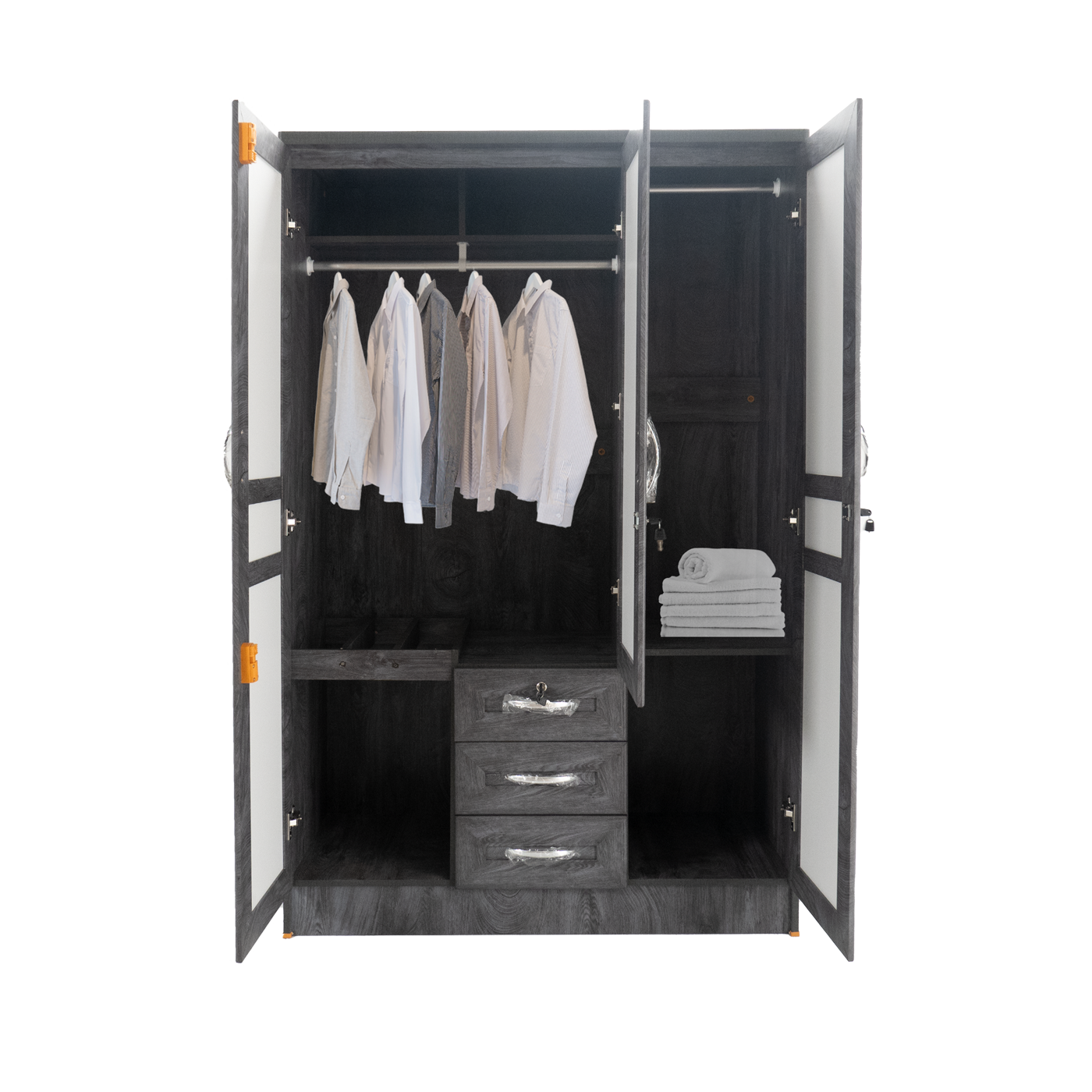 ตู้เสื้อผ้า - ทึบ 4 ฟุต กระจกเงากลาง บานเรียบ