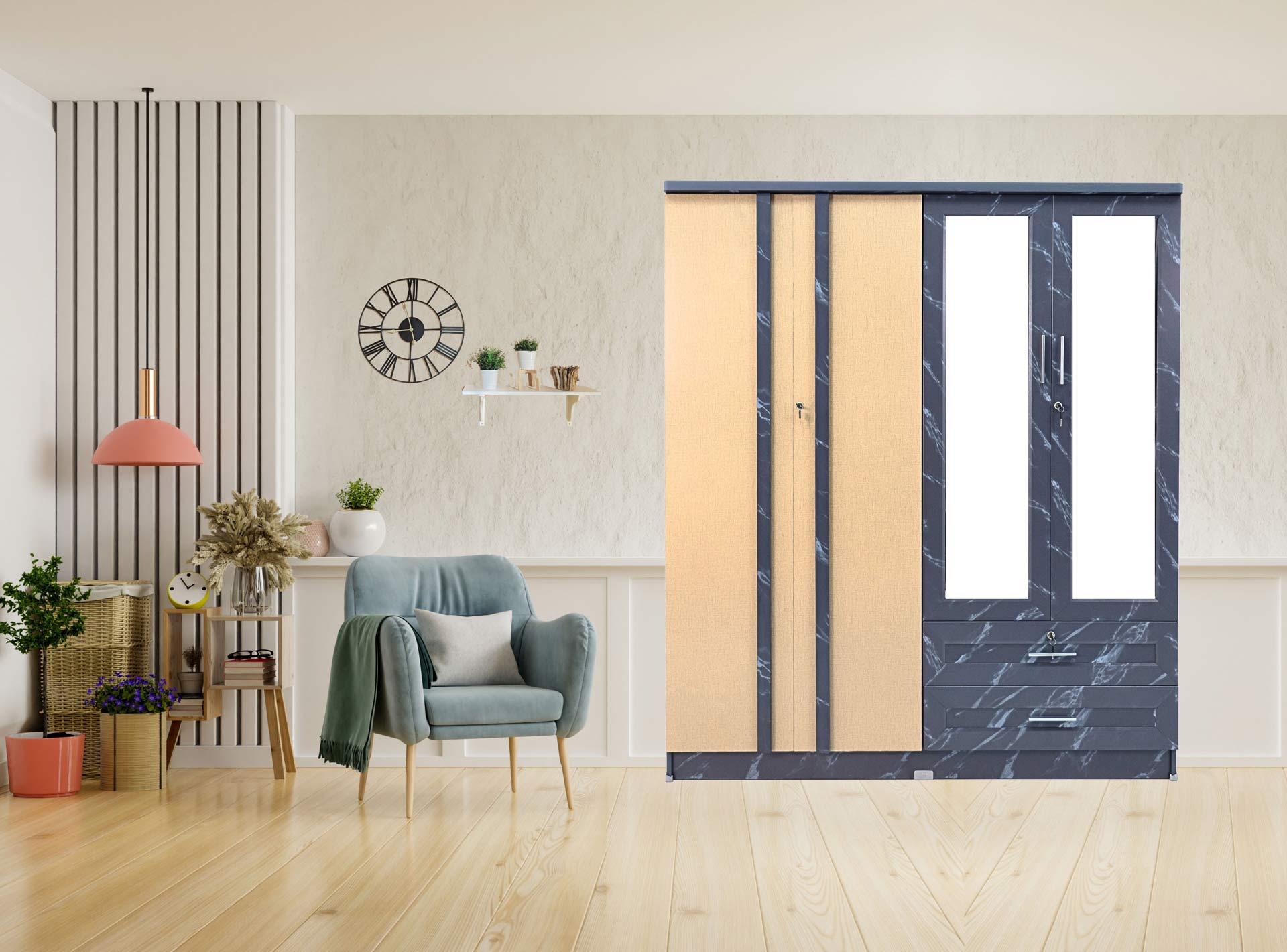 สีลายหินอ่อนเทา - บานผ้าครีม WD-5F04M03-F02 -