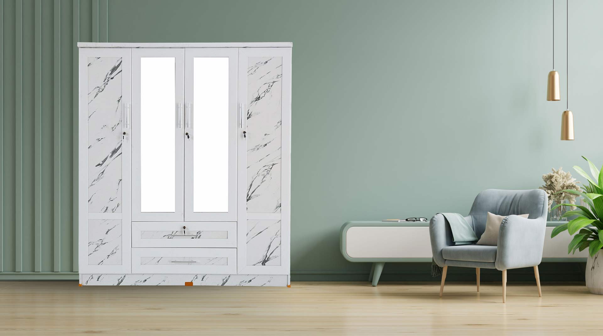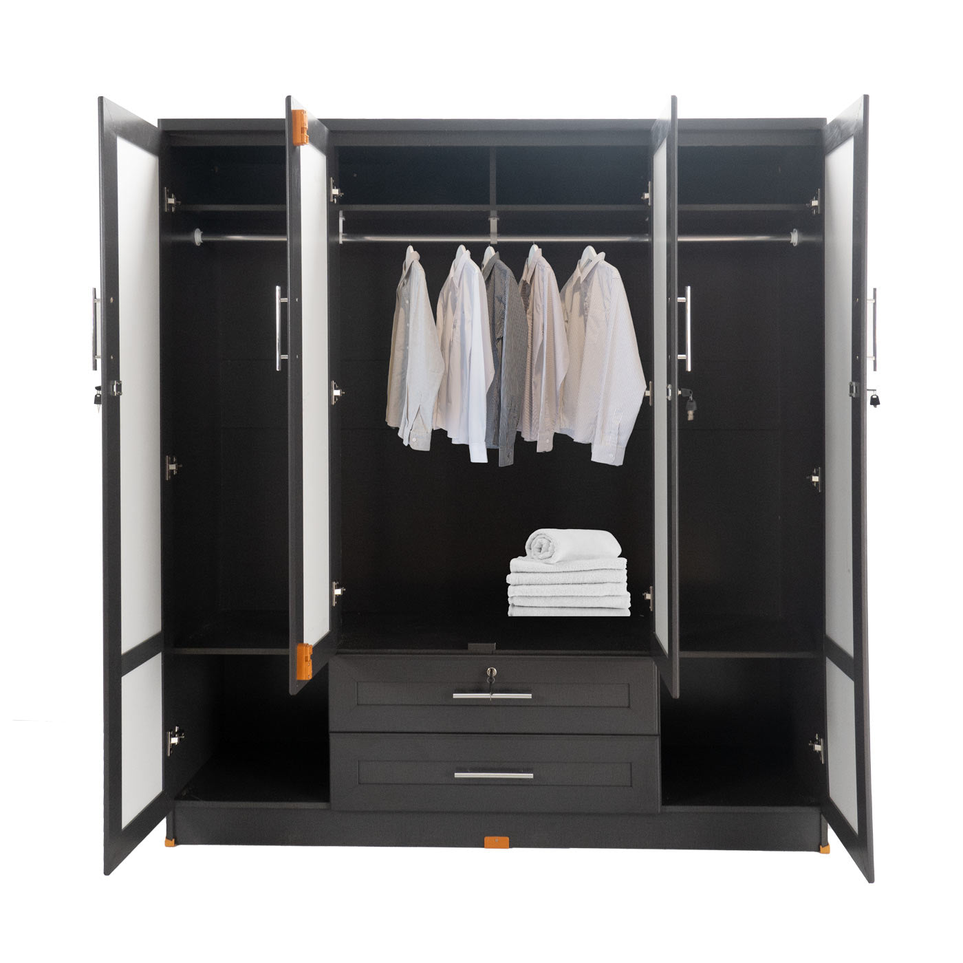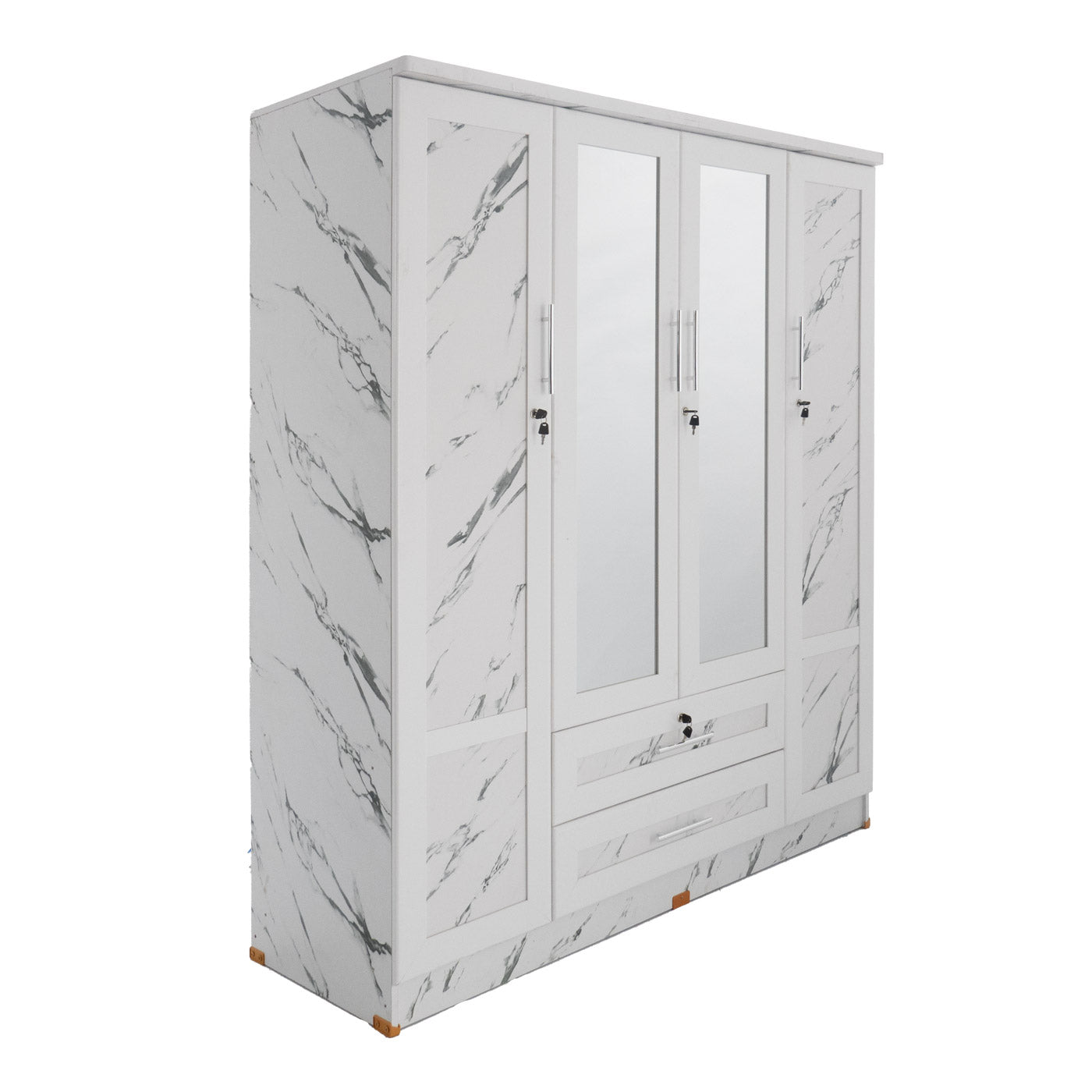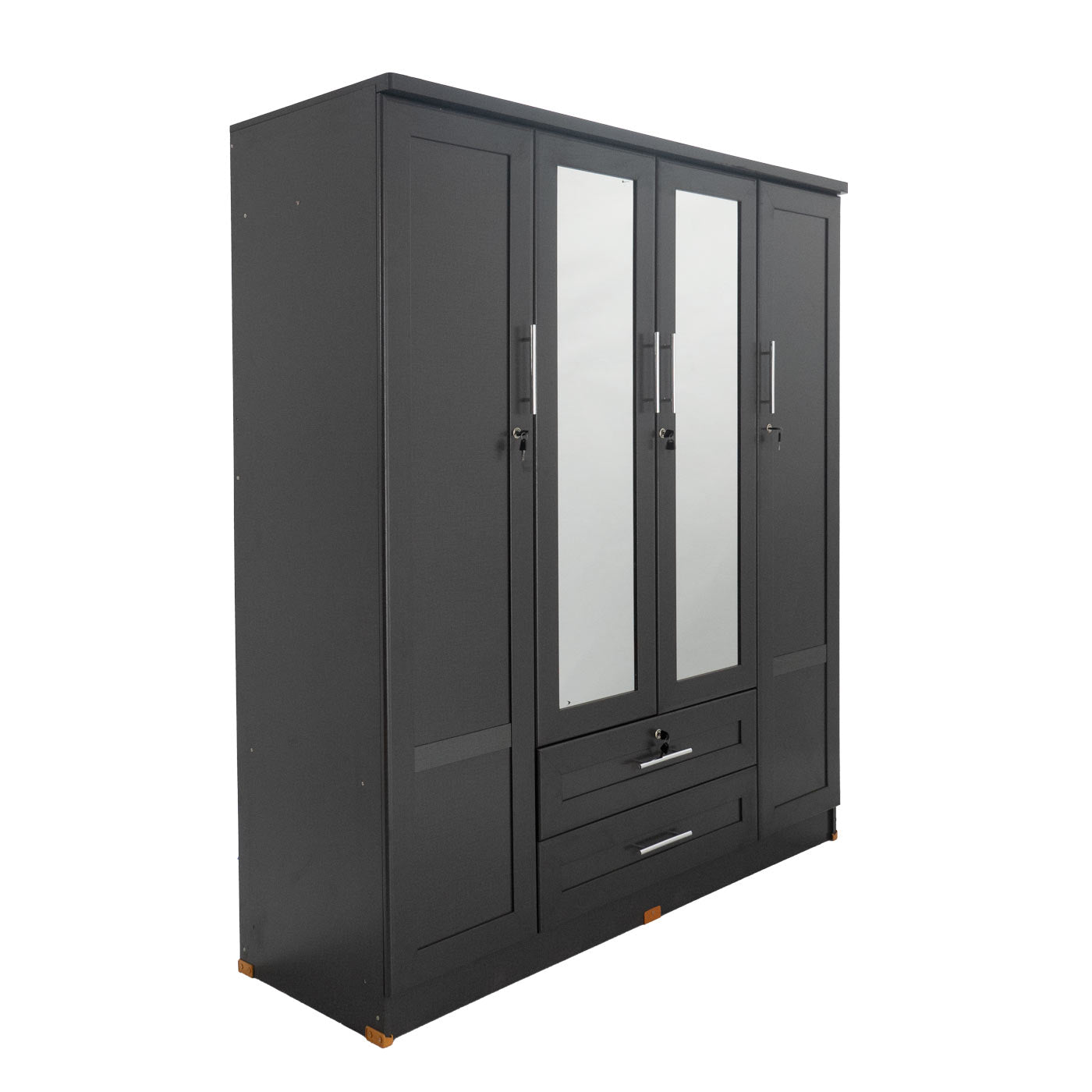 ตู้เสื้อผ้า - ทึบ 5 ฟุต กระจกเงาคู่ แบบ 2 ลิ้นชัก